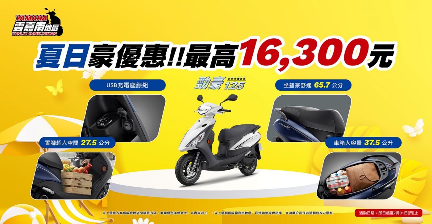 以上活動僅限雲嘉南地區的實體店面購買有效,車輛顏色僅供參考,以實車為主