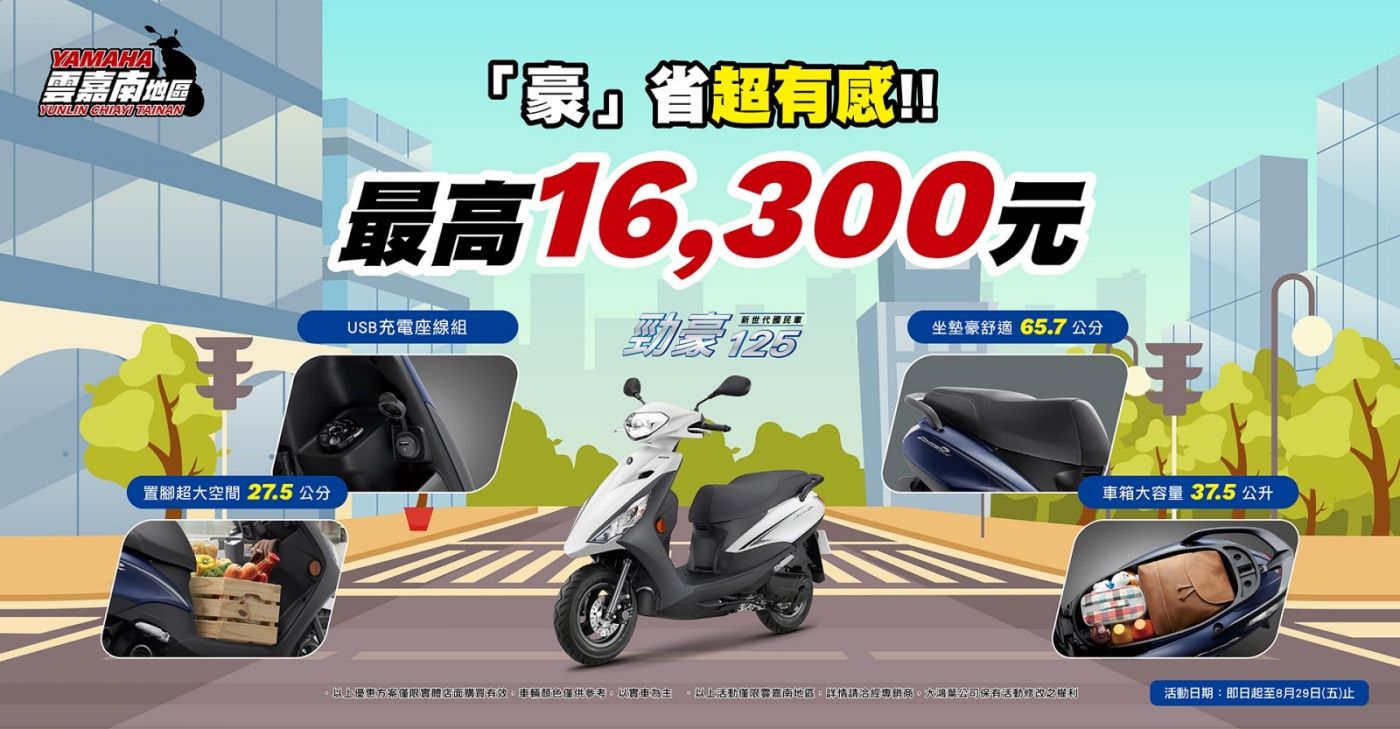 以上活動僅限雲嘉南地區的實體店面購買有效,車輛顏色僅供參考,以實車為主