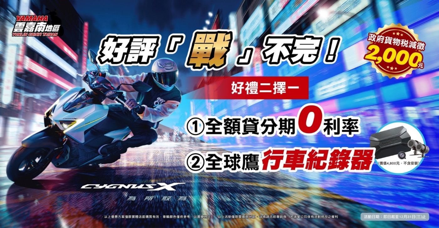 以上活動僅限雲嘉南地區的實體店面購買有效,車輛顏色僅供參考,以實車為主