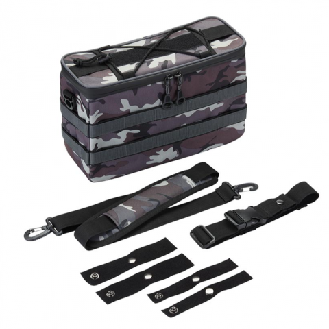 可搭配(後側功能掛架BBJQF8400000/BBJQF8401000)掛附機車後側架,附有掛附扣具,提供額外置物空間,亦可快速拆下、側背使用。